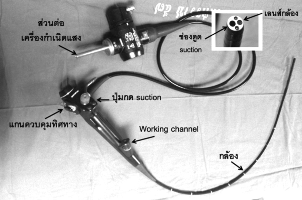 Flexible bronchoscope มีหลายขนาดและมีส่วนประกอบของกล้องดังต่อไปนี้ (รูปที่ 1)